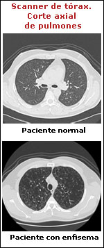 La bronquitis crónica se presenta con tos y expectoración por más de tres meses durante dos o más años consecutivos, en un paciente en el cual otras causas de tos crónica han sido excluidas. Se caracteriza por una hipertrofia de las glándulas mucosas de los bronquios medianos y mayores, con un componente inflamatorio leve o moderado. El enfisema pulmonar se manifiesta con sensación de cansancio o disnea. Consiste en un aumento permanente de los espacios aéreos responsables del intercambio gaseoso con destrucción de las paredes alveolares. El único examen que puede confirmar la existencia de enfisema es la biopsia pulmonar. Sin embargo, un scanner de tórax puede mostrarlo en una etapa temprana, con lo que se evita una biopsia. La radiografía sólo lo detecta en etapas avanzadas. |